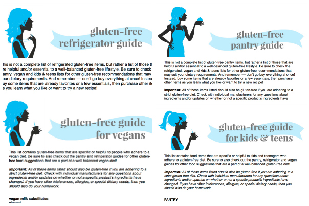 Click for FREE downloadable gluten-free lists for your refrigerator and pantry, plus vegans, kids and teens!