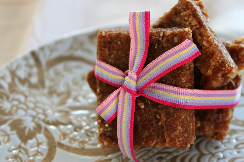 Pulse all ingredients in a food processor or high speed blender until pulverized. Scoop mixture into a 9×9 square baking dish using a spatula to press into dish and spread evenly. Refrigerate for 1 hour and then cut into squares. Store bars in refrigerator.
