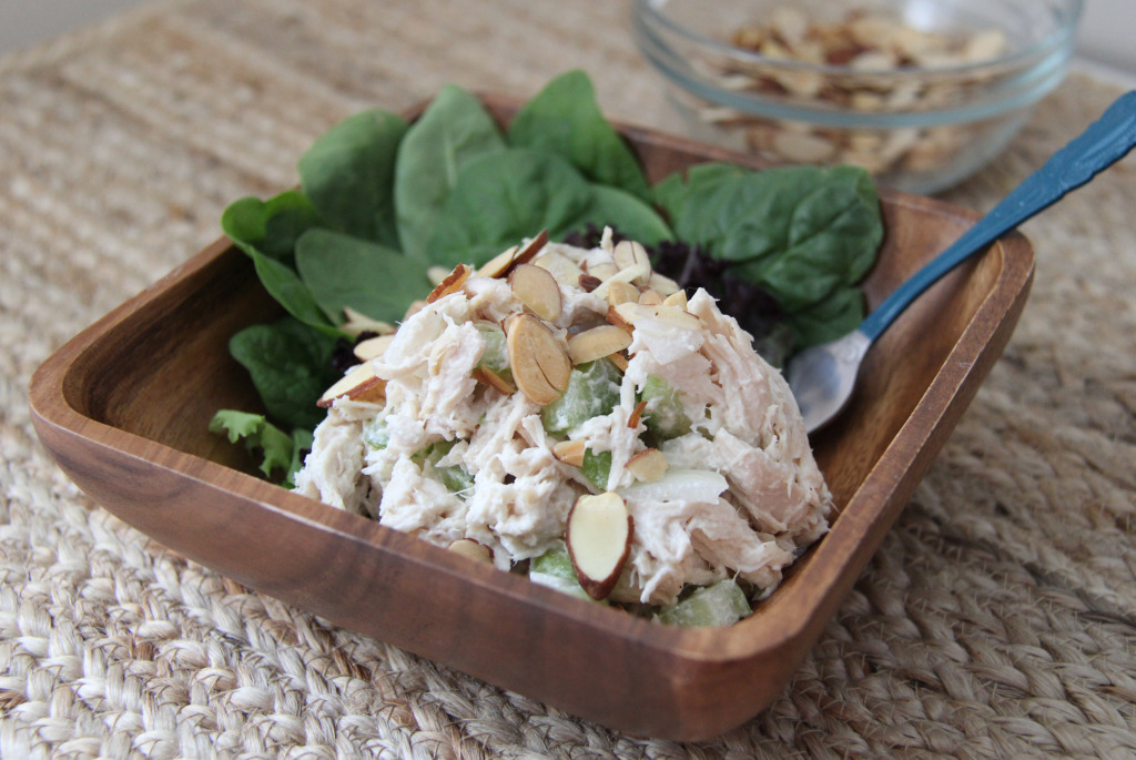 (3) Add celery, yogurt, sea salt and pepper to the chicken, stirring to combine. Sprinkle almonds on top and stir to incorporate. Enjoy with gluten-free bread or crackers, or serve over mixed greens!