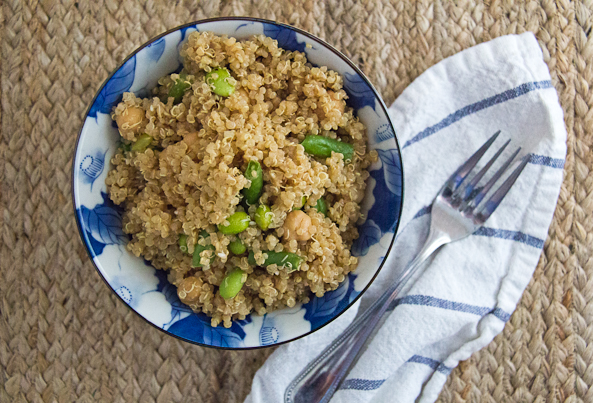 This dish makes enough to serve a large party! Get the scoop on this delicious gluten-free and vegan Thai Chickpea Quinoa Salad!
